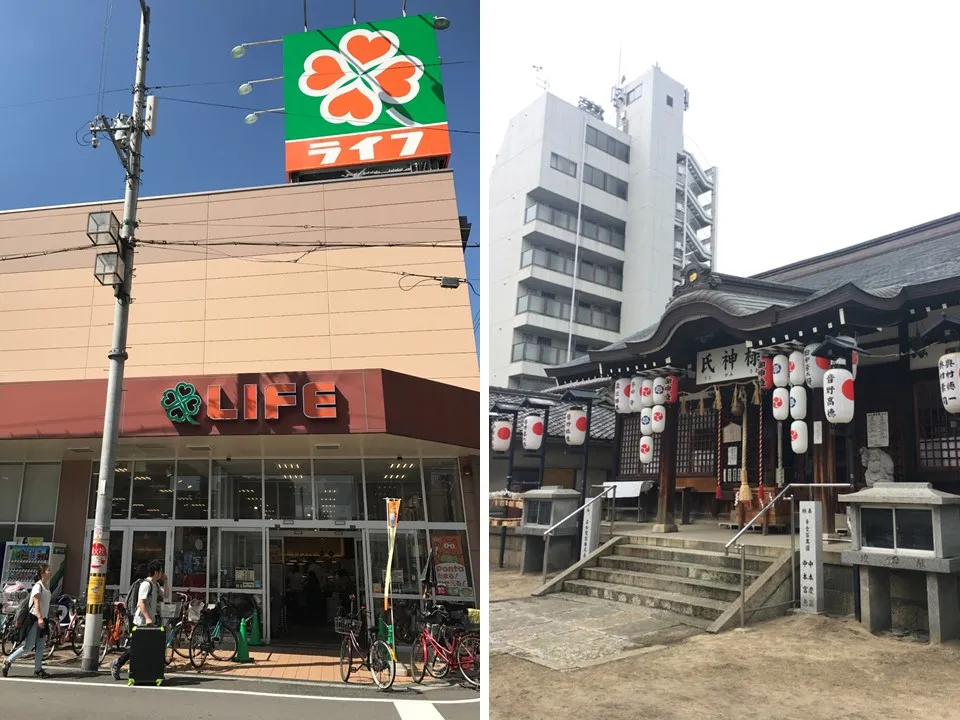 スーパーライフやスーパー玉出などが近いので自炊派さんも安心。 ハウス至近にある「大国主神社」は神様が祀られるパワースポット! たこ焼き屋やスーパー銭湯など地元のオススメスポットが盛りだくさんです。
