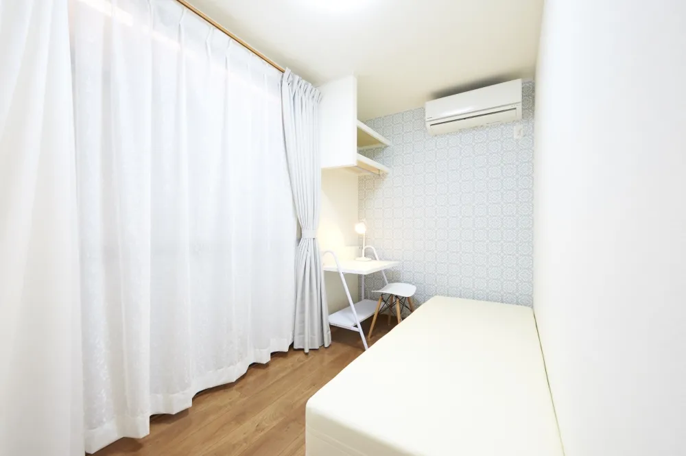 こちらのドミトリーは2名1室タイプで、半個室のようなつくりになっています。ドミトリーですが、プライベートスペースはばっちりです!