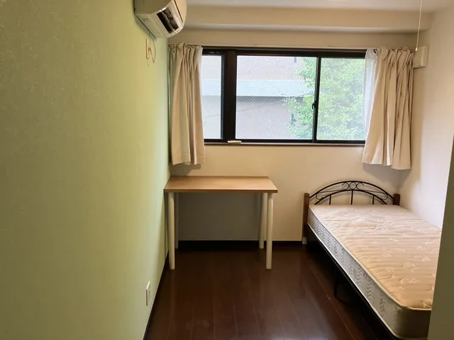 各個室にはベッド、机、椅子、エアコン、クローゼットがございます。全部屋無料でWi-Fiをご利用頂けます。