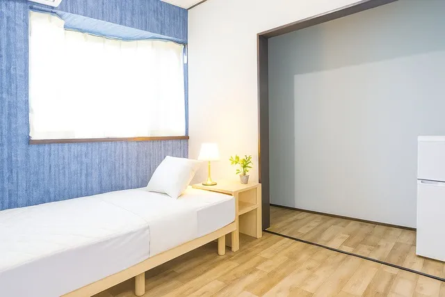 お仕事頑張った後に帰るハウスでは とにかく快適に過ごして、ゆっくり休んで頂きたい。狭いベットでは疲れも取れません。広いベットと上質なマットレスでゆっくり休んでください。シェアハウスでセミダブルを設置しているのはとても珍しいです。