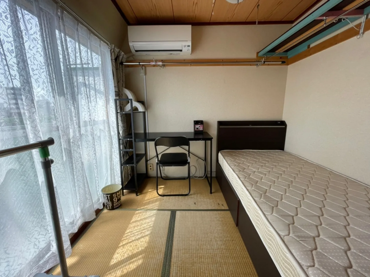 5F。 陽当たりA。 2名入居NG。 押入れ付き。 無線LANあり。 備品:エアコン、液晶TV、冷凍室付き冷蔵庫、椅子、テーブル。初期費用無し、最短契約期間6ヵ月~