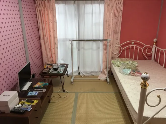 2F。 床材は和室。 陽当たりA。 窓の向きは北東、南東。 2名入居NG。 ベランダ、収納付き。 有線LANあり、無線LANあり。 備品:TV、TV台付きドレッサー、冷蔵庫、収納ケース、ハンガー、カーテン。初期費用無し、最短契約期間6ヵ月~
