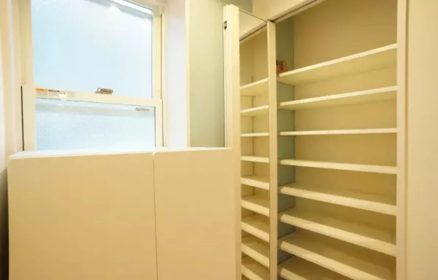 各お部屋には、エアコン、ハンガーラック、カウンターテーブル、椅子、収納ベッドが設置済み。