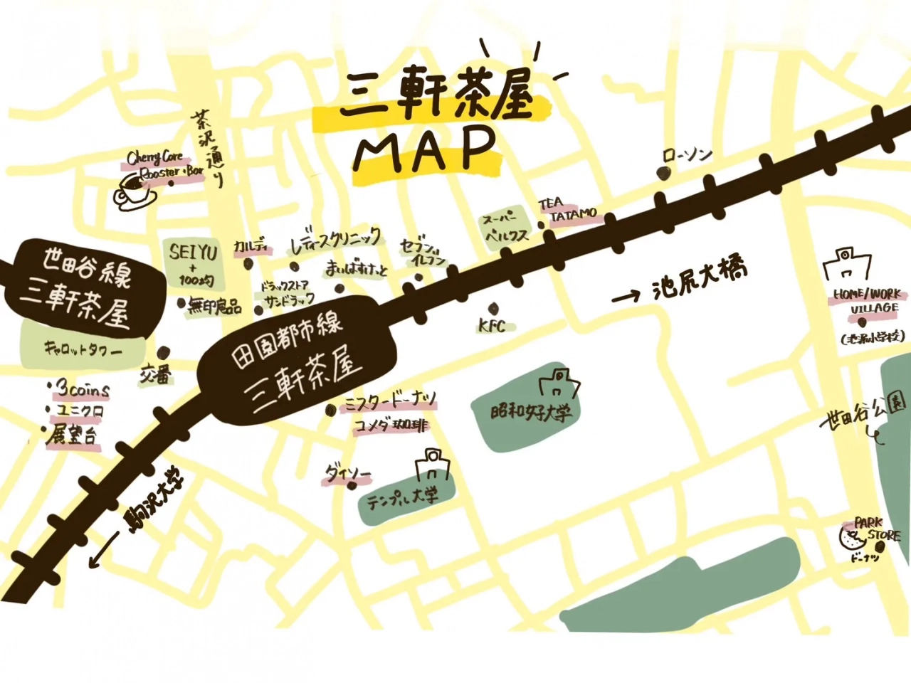 (三軒茶屋、代官山、桜新町、豪徳寺)