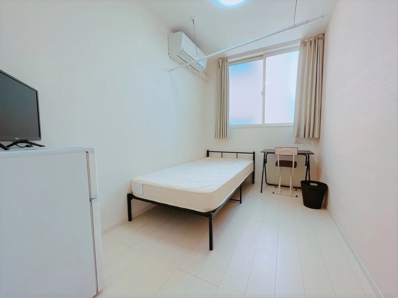 各部屋に冷蔵庫・テレビ・ベッド・机・椅子を完備しているので、身一つで入居できます!※マットレス付きます。