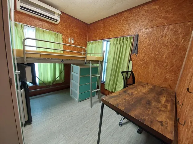 中庭、スタジオ、個室に冷蔵庫、ベッド、冷暖房など!ハイベッドに変更済み
