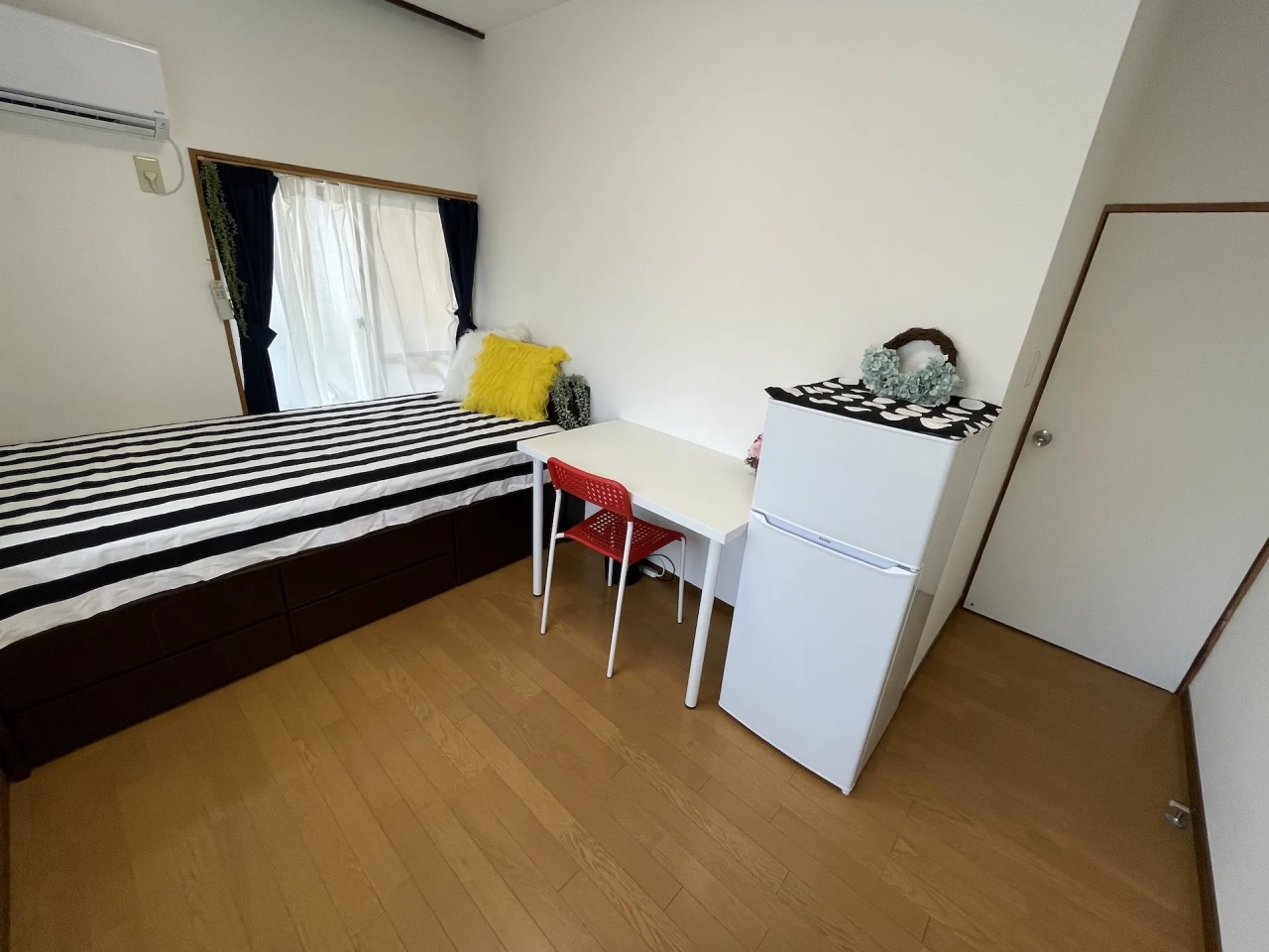 ベッド、たんす、机、イス、冷蔵庫、広い!
