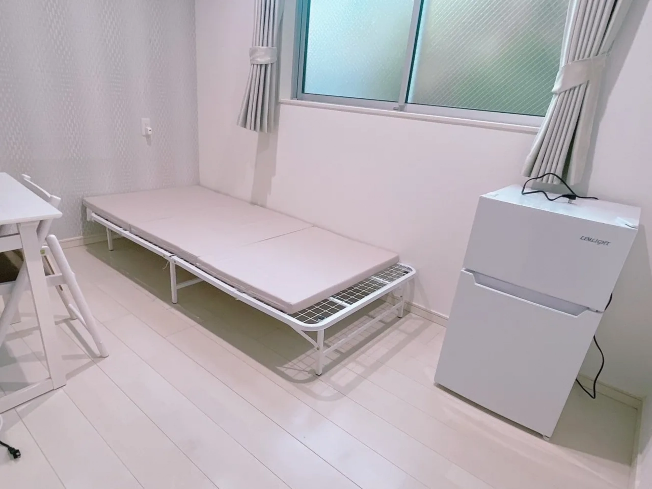 各部屋に冷蔵庫・テレビ・ベッドを完備しているので、身一つで入居できます!※マットレス付きます。