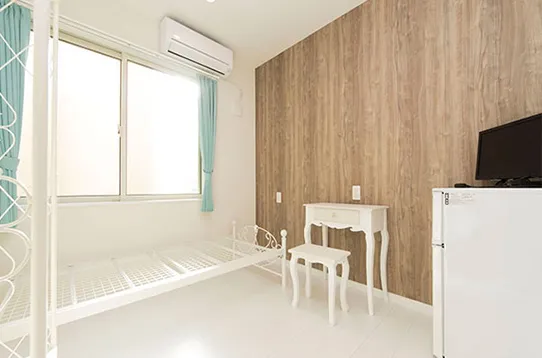各部屋に冷蔵庫・テレビ・ベッドを完備しているので、身一つで入居できます!※マットレス付きます。