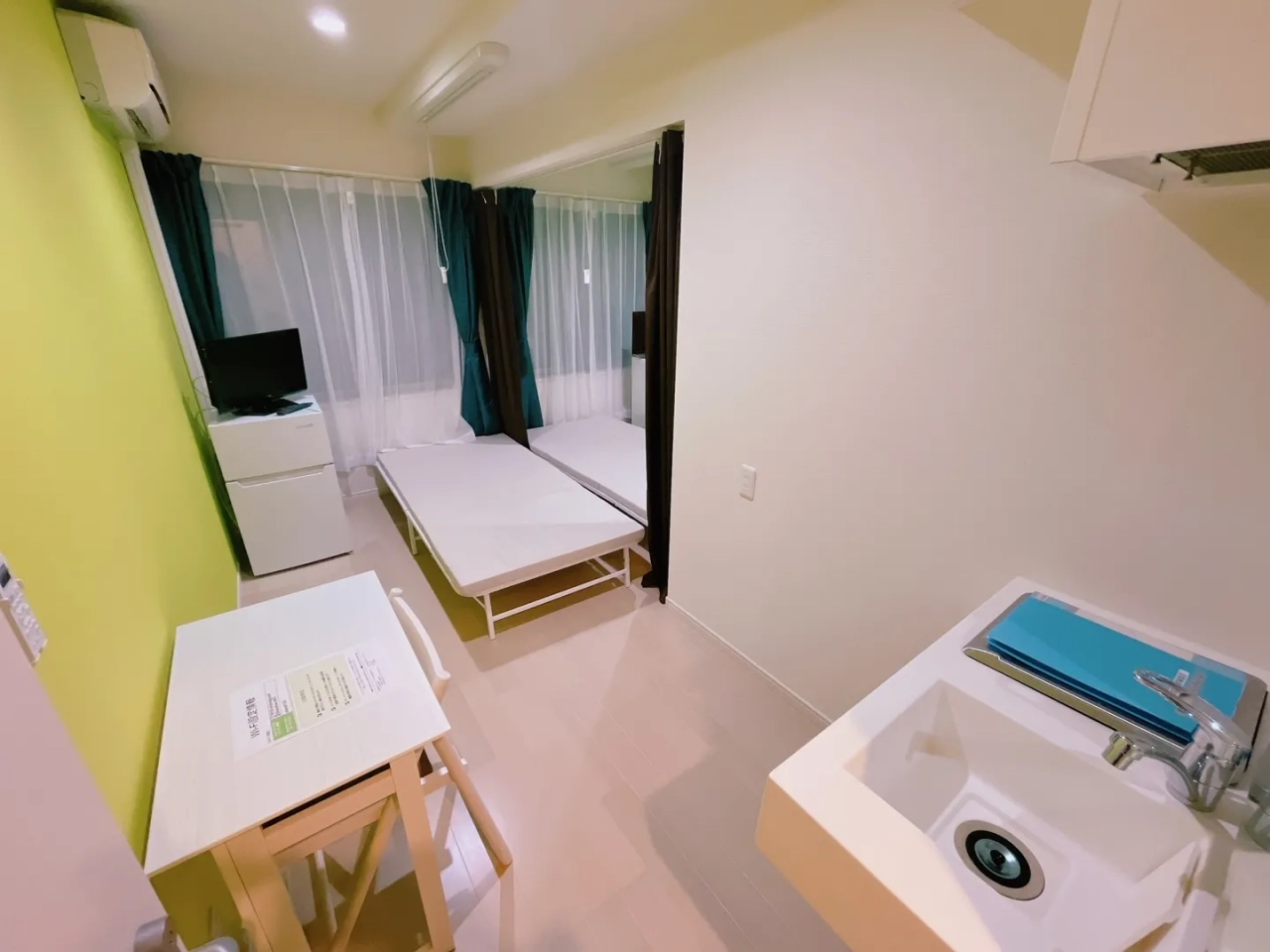 各部屋にミニキッチンつき! 冷蔵庫・テレビを完備しているので、身一つで入居できます!※マットレス付きます。