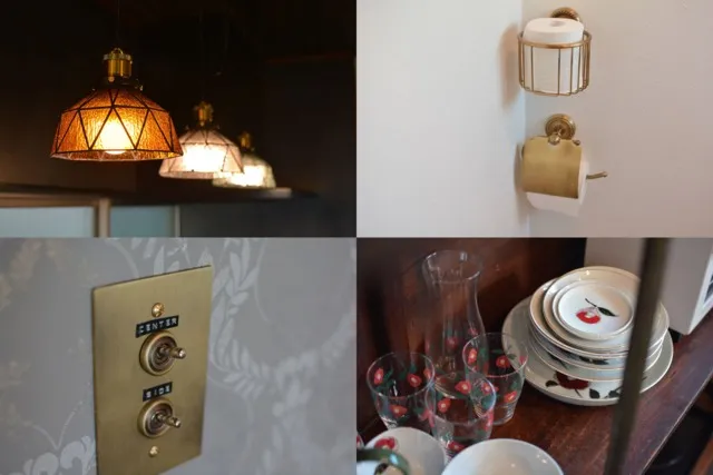キッチンにはアンティークの什器に調理器具や調理家電がずらり。