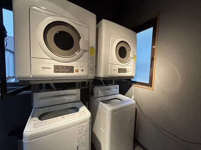 洗濯機2台、乾燥機2台を完備。使用前にフィルター掃除必須です。
