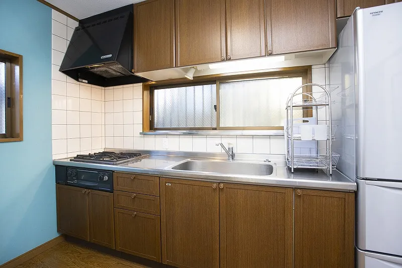 キッチン家電、料理器具、食器など一式そろったキッチン