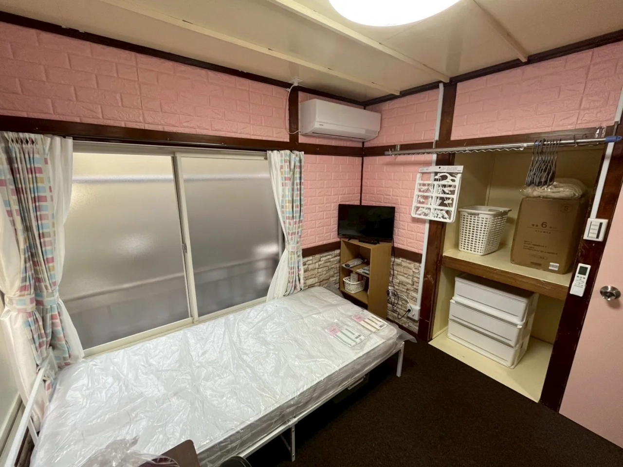 1F。 床材は洋室(カーペット)。 陽当たりB。 窓の向きは東。 2名入居NG。無線LANあり。 備品:エアコン、液晶TV、冷凍冷蔵庫、炊飯器。