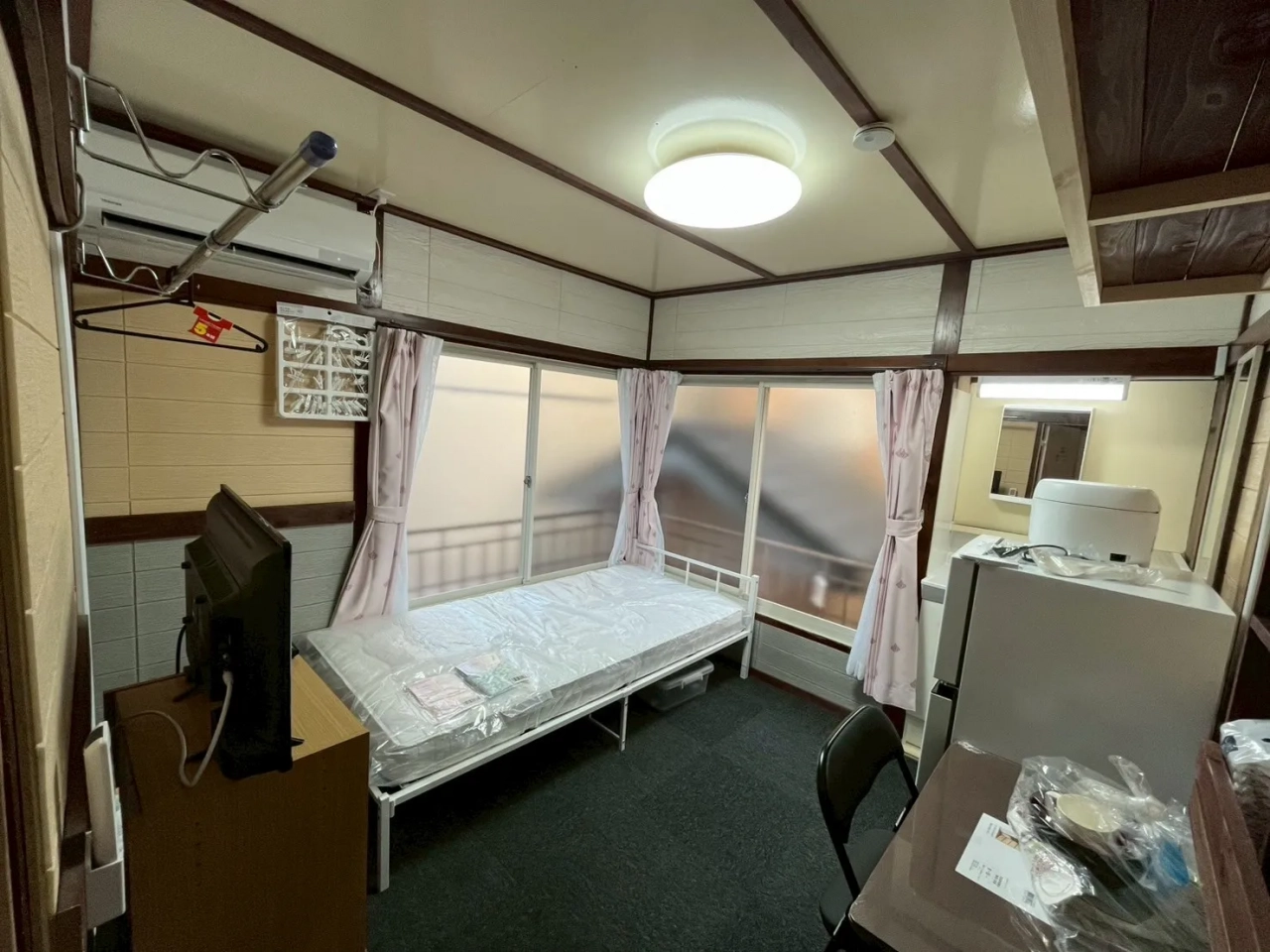 1F。 床材は洋室(カーペット)。 陽当たりB。 窓の向きは東。 2名入居NG。 無線LANあり。 備品:エアコン、液晶TV、冷凍冷蔵庫、炊飯器。