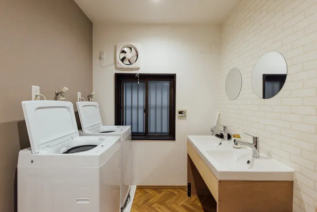 1Fに洗濯機2台(無料)、3Fに洗濯機1台(無料) 1Fに1台乾燥機(有料)もございます