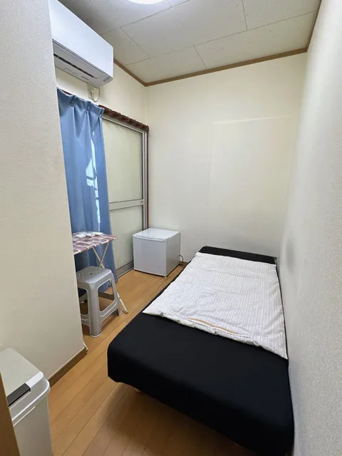 広い部屋です。ベッド2m。窓あり、エアコン付き、冷蔵庫付き