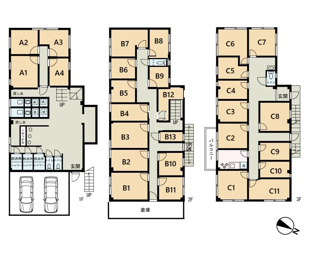 ●全部屋個室・鍵付き・窓付