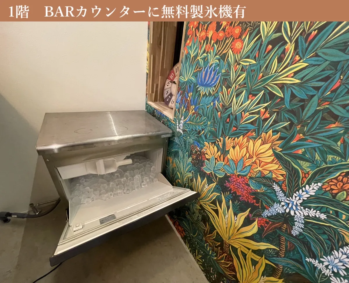 1階のBARカウンターに無料製氷機有