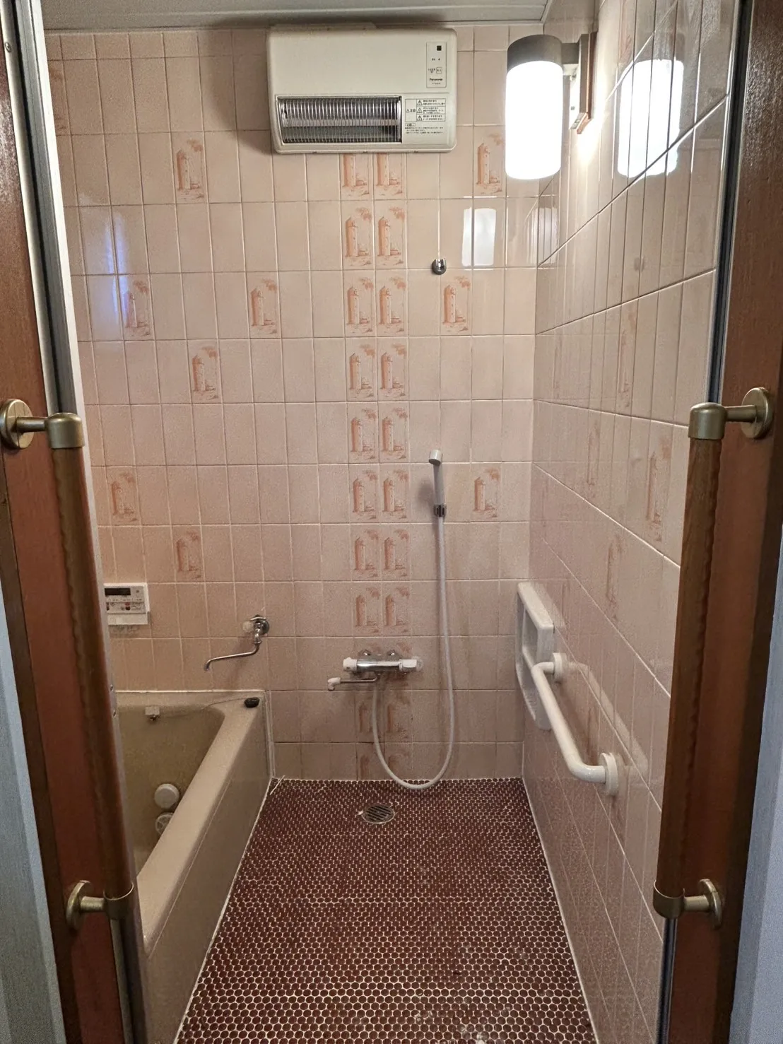 少しレトロなタイル張りのお風呂ですが、それもまたキュート? 浴室用の乾燥機・暖房機も設置してあり快適です。