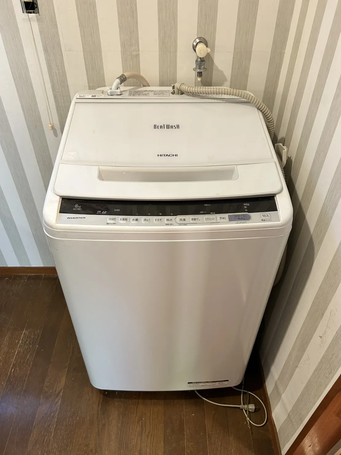 脱衣所には、日立の洗濯機がついています。