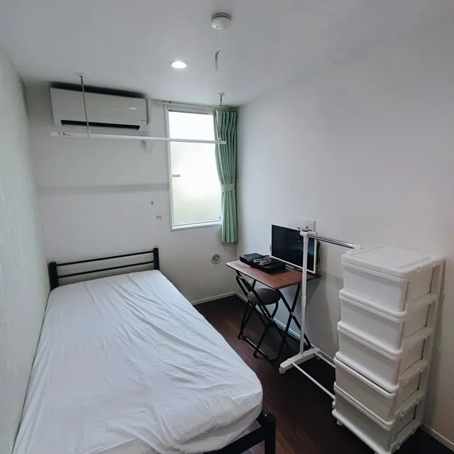 共益費(水道・ガス・電気・インターネット含む)。(備品:エアコン・ベッド・マットレス・冷蔵庫・カーテン・デスク&チェア・天井付き物干し)