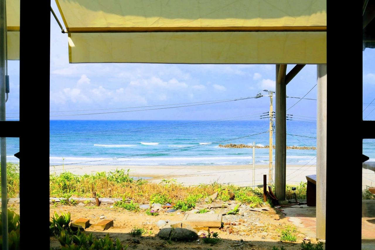 湯野浜海岸が徒歩1分程度の距離にあり、サンルームや東屋から海が見下ろすことができます。 特に天気のいい日の夕日は一見の価値があります。