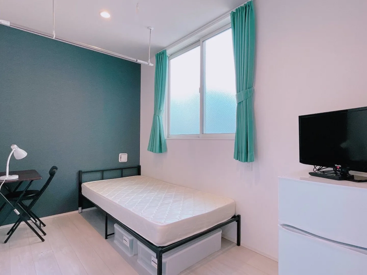 各部屋に冷蔵庫・テレビ・ベッドを完備しているので、身一つで入居できます!※マットレス付きます。