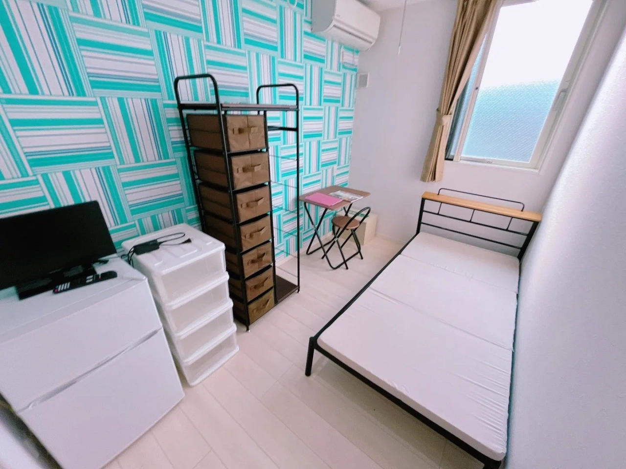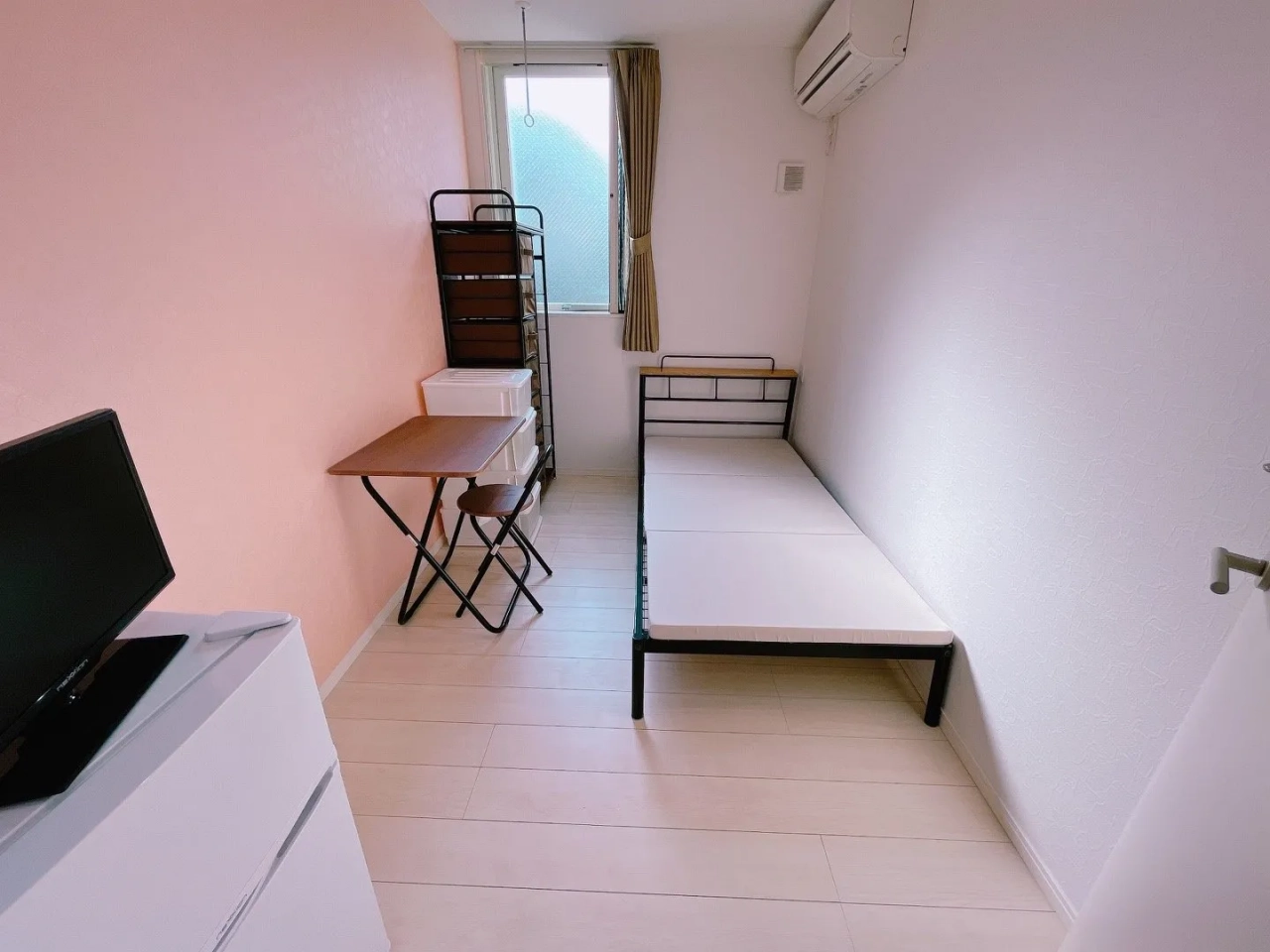 各部屋に冷蔵庫・テレビ・ベッドを完備しているので、身一つで入居できます!※マットレス付きます。