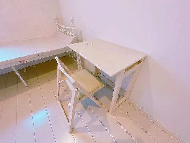 シンプルなお部屋はこちら! 各部屋に冷蔵庫・テレビ・ベッド・机・椅子を完備しているので、身一つで入居できます!