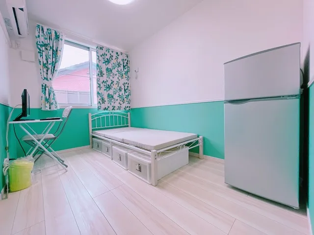 各部屋に冷蔵庫・テレビ・ベッドを完備しているので、身一つで入居できます!※マットレス付きます。