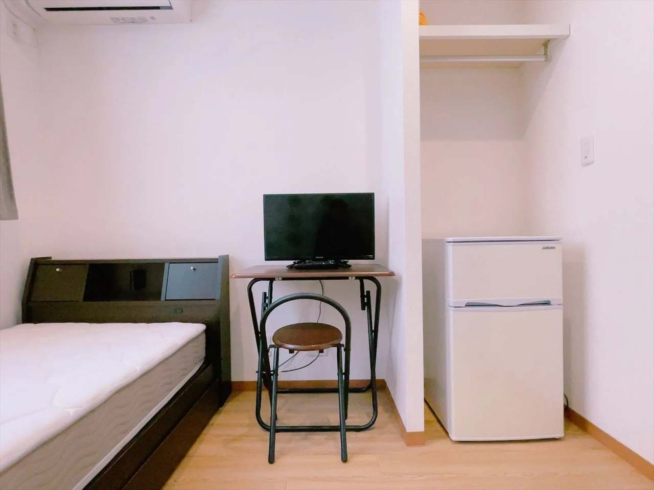 各部屋に冷蔵庫・テレビ・ベッドを完備しているので、身一つで入居できます!※マットレス付きます。