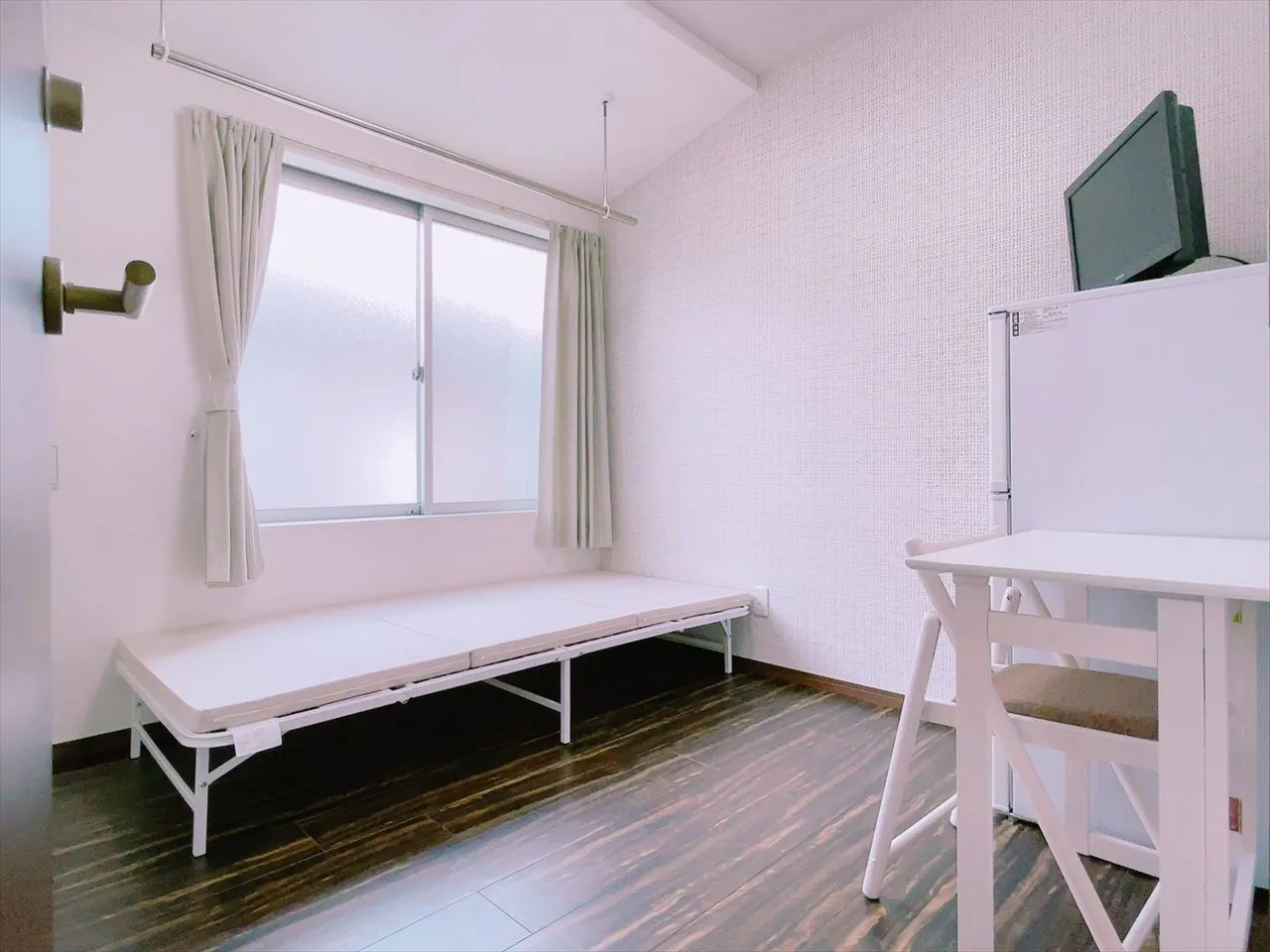 各部屋に冷蔵庫・テレビ・ベッドを完備しているので、身一つで入居できます!※マットレス付きます。