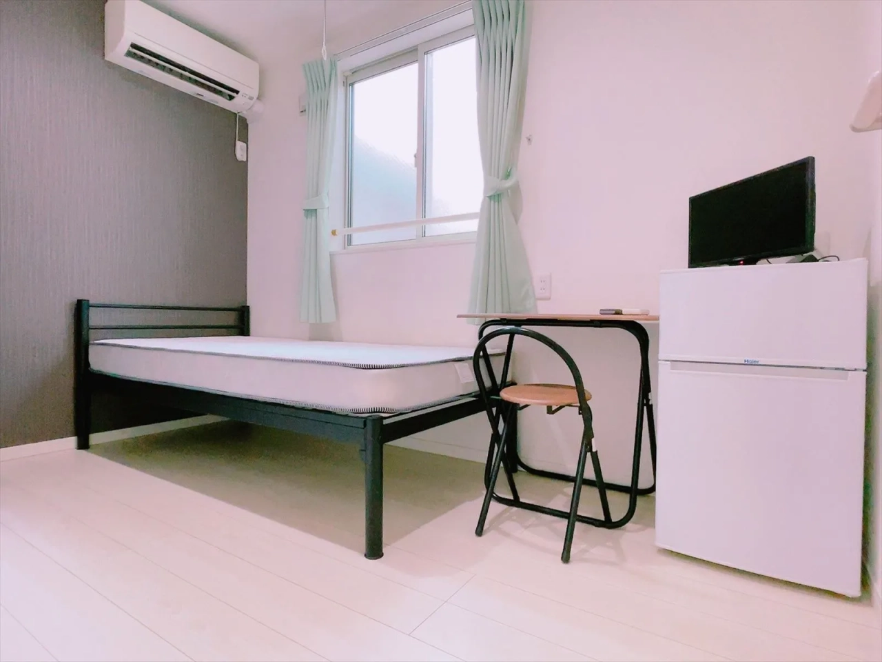 各部屋に冷蔵庫・テレビ・ベッドを完備しているので、身一つで入居できます!※マットレス付きます。