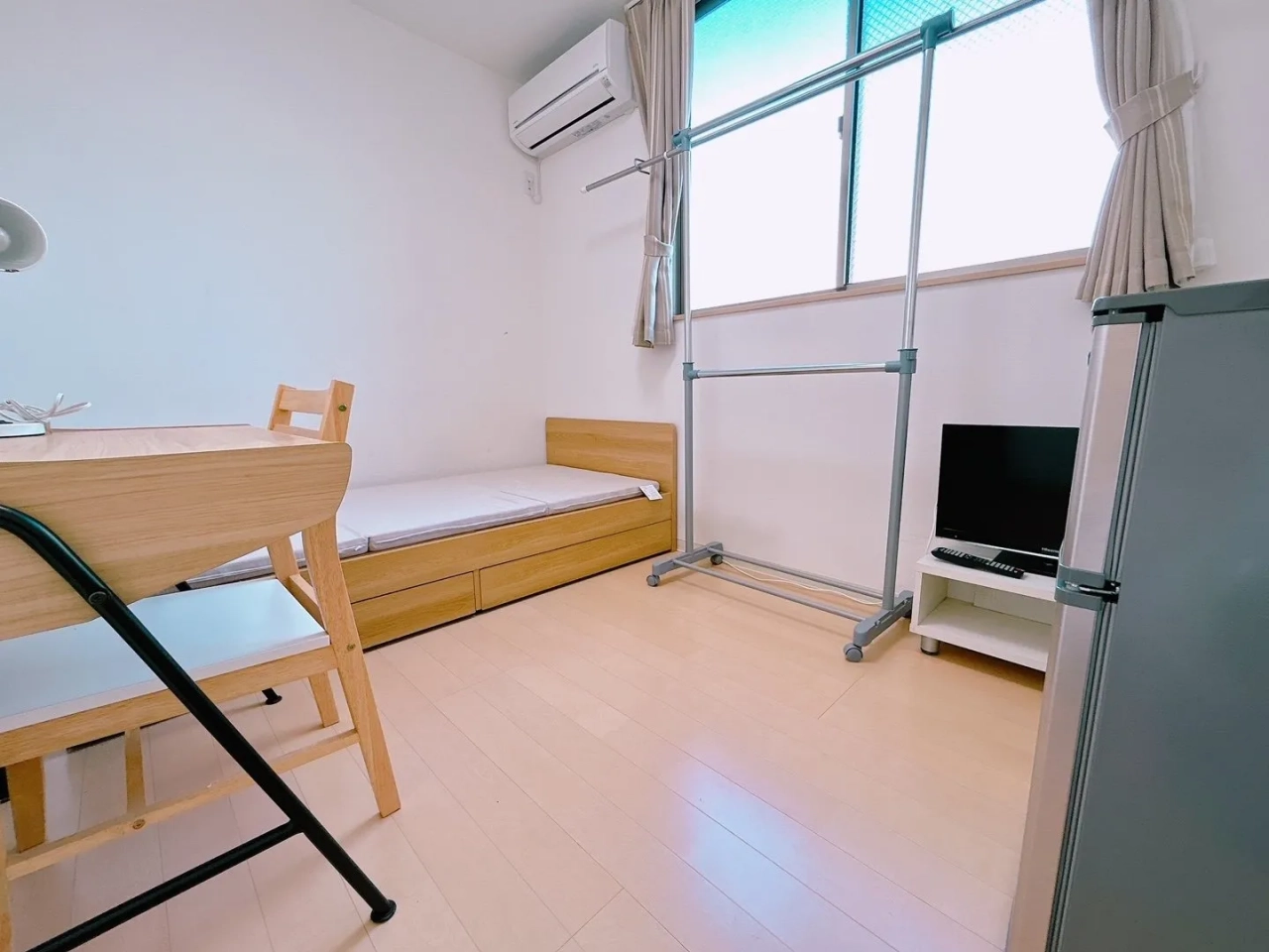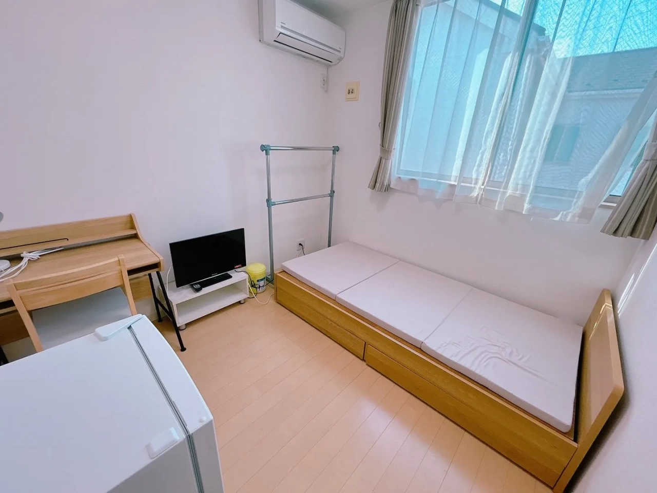 各部屋に冷蔵庫・テレビ・ベッドを完備しているので、身一つで入居できます!※マットレス付きます。