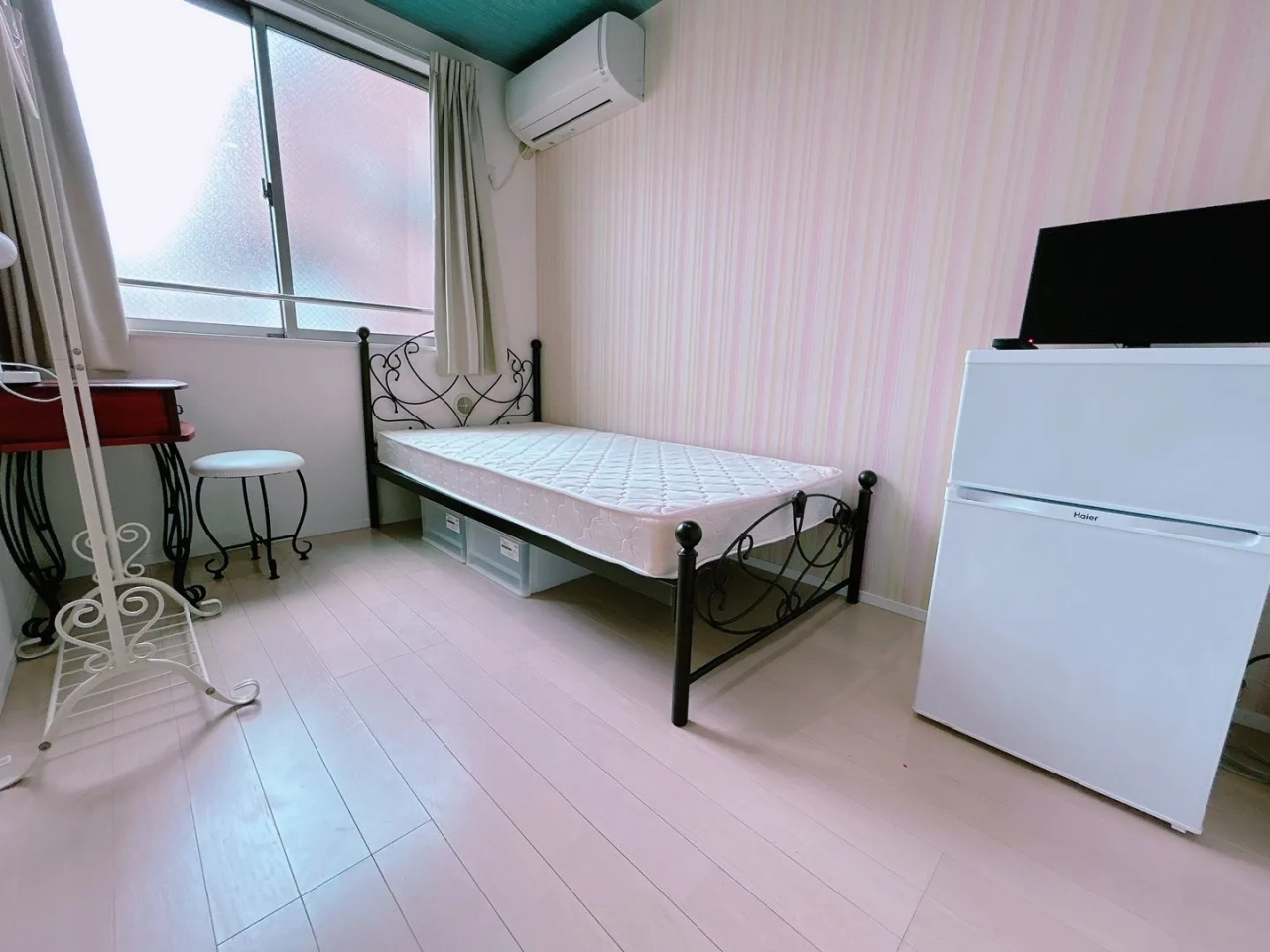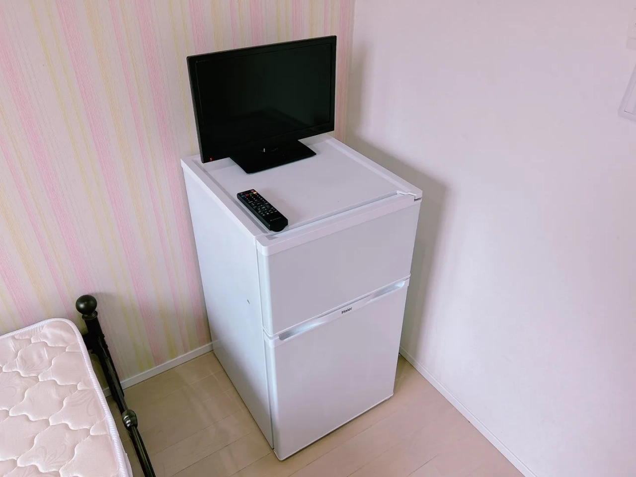 各部屋に冷蔵庫・テレビ・ベッドを完備しているので、身一つで入居できます!※マットレス付きます。
