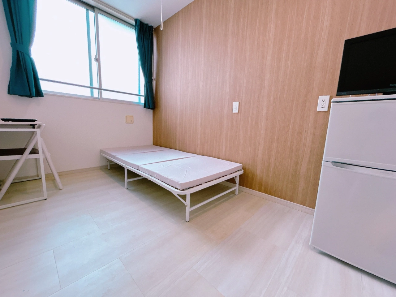 各部屋に冷蔵庫・テレビ・ベッドを完備しているので、身一つで入居できます!※マットレス付きます。