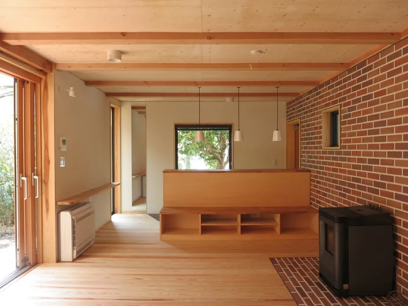 ペレットストーブを用意。スイッチひとつで着火消化できるので薪ストーブなどより簡単に炎を楽しめます。