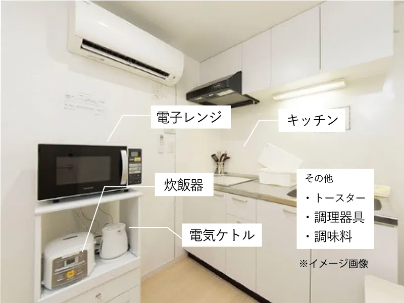 ※調理器具、調味料、その他サランラップなどの共用消耗品を無料提供