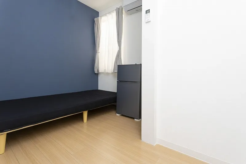 ◆備品:ベッド、エアコン、机、椅子、冷蔵庫、電源、TVジャック、収納