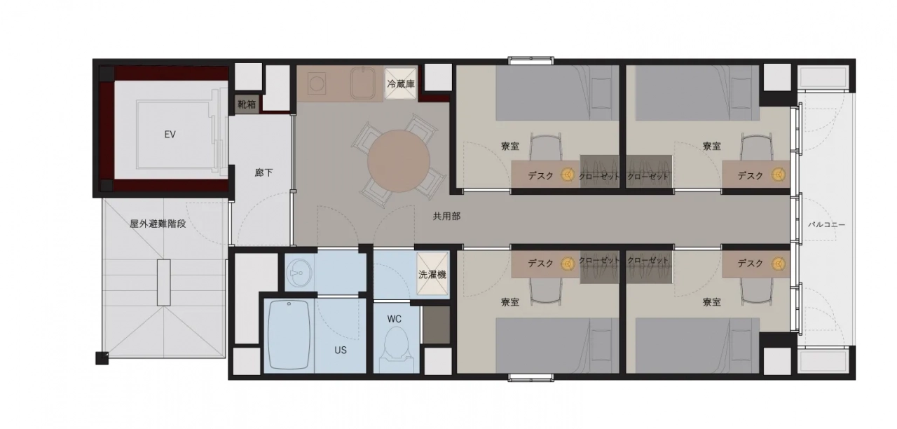 1フロア最大4人で、キッチン・リビング・独立トイレ・お風呂・洗濯機、乾燥機をシェア!