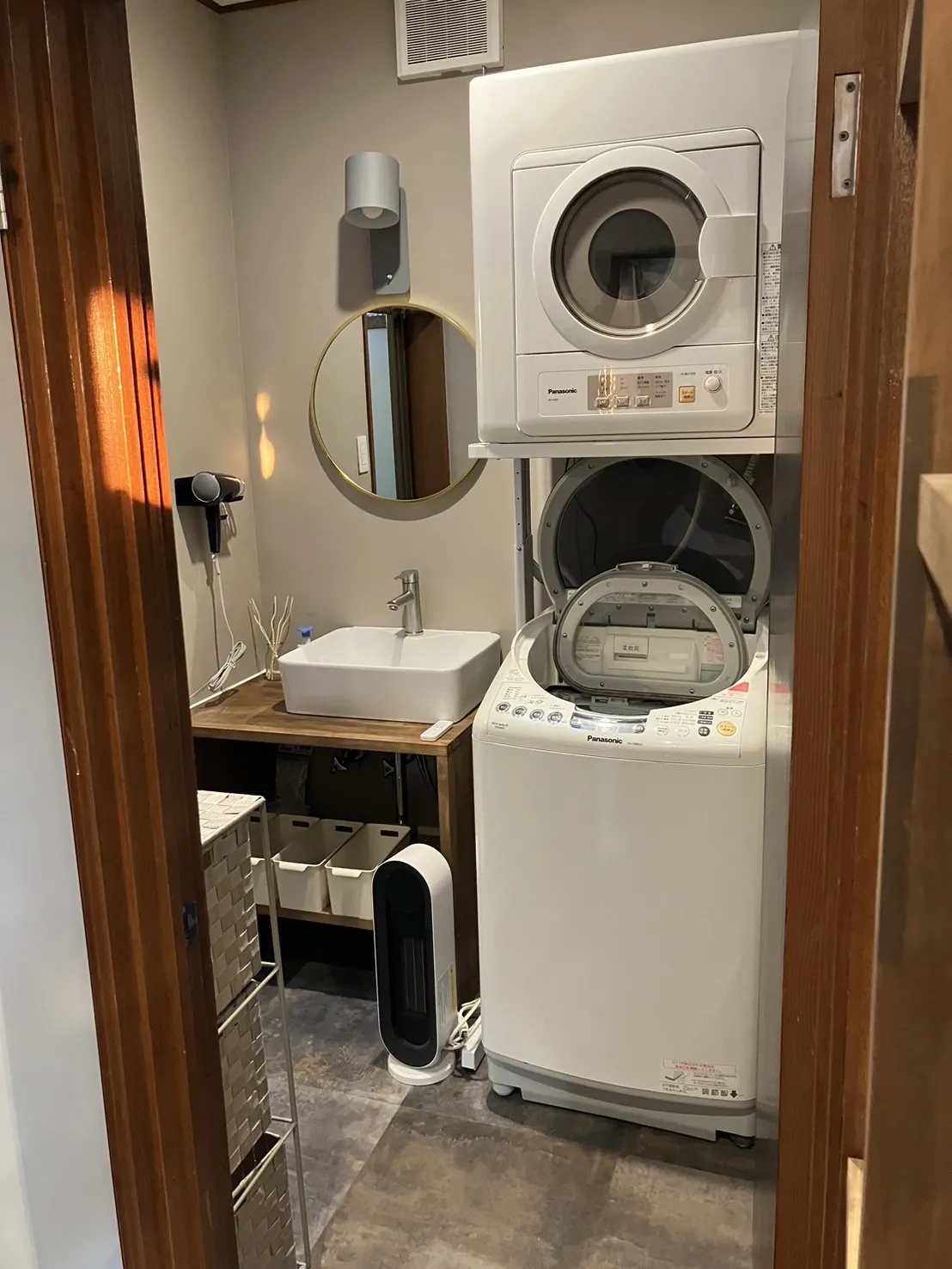 洗濯機1台、電気式乾燥機1台あり。洗面所は1階と2階にそれぞれ1つずつ。