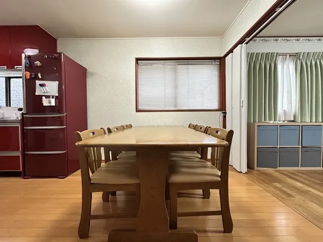 共用部には、大きな6人掛けのダイニングテーブルとソファがありますので、複数人が同時にリビングを利用しても混み合いません。
