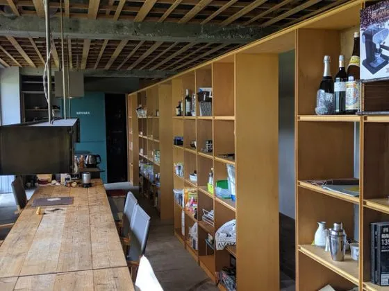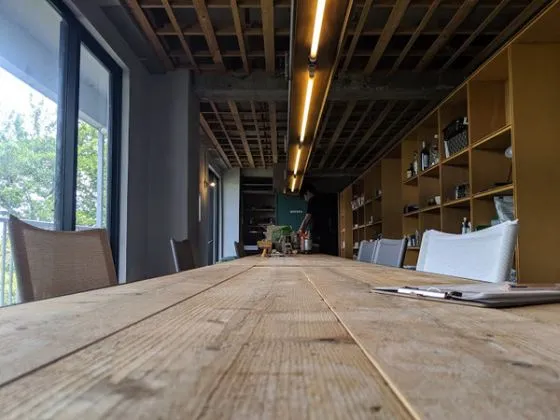 下駄箱や大きな流し台など、幼稚園の面影をあえて残してリノベーションしました。丘の上に建つ窓からは、伊豆の山々を一望。建物自体を緑で包み込み、この土地に深く根ざした暮らしをデザインしています。 桜の木の下で季節を感じ、心地よい風が抜ける。そんな自然体の暮らし、ここで叶えませんか?