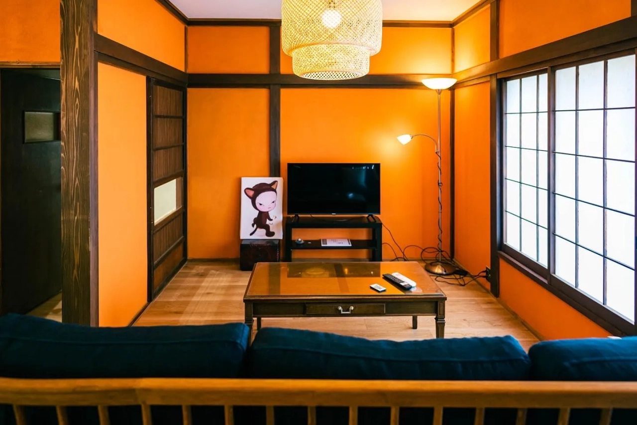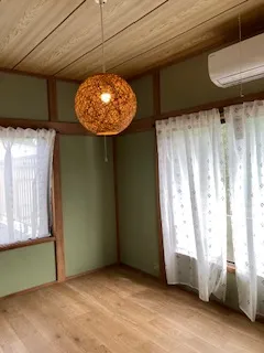 元応接間を改装。モダンな天井が印象的