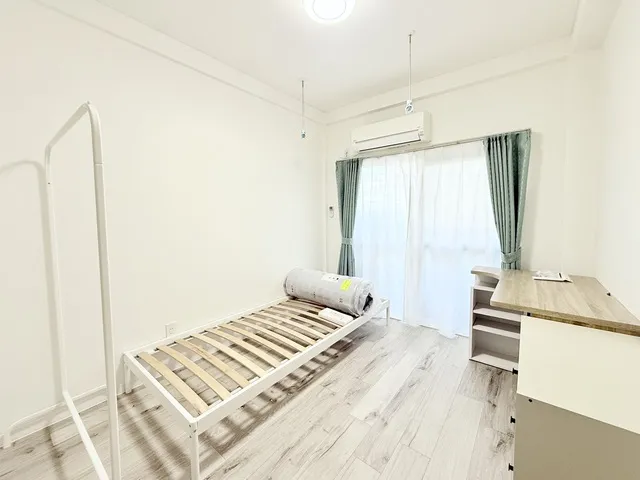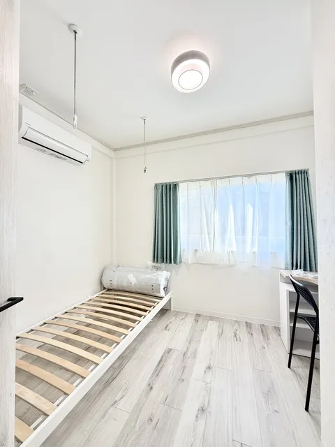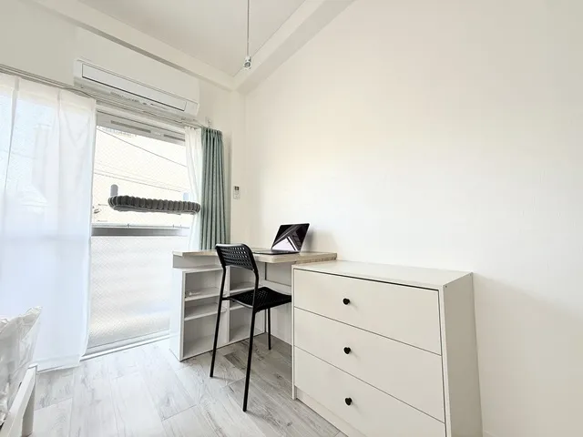白を基調とした清潔感溢れるお部屋に新品の家具を揃えました。