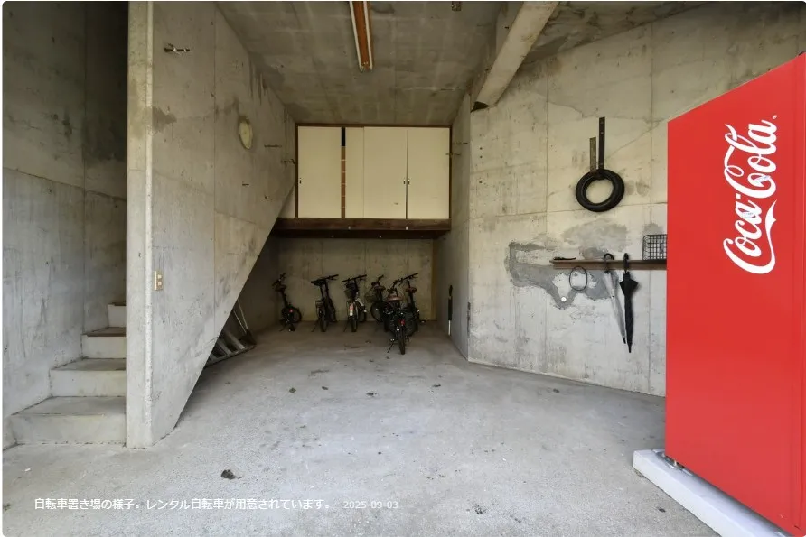 自転車1人1台貸し出し可能。敷地内にコカ・コーラ自販機あり。さらに冷凍自販機の設置を計画中でレンチンのみで美味しくご当地グルメまで堪能できる!
