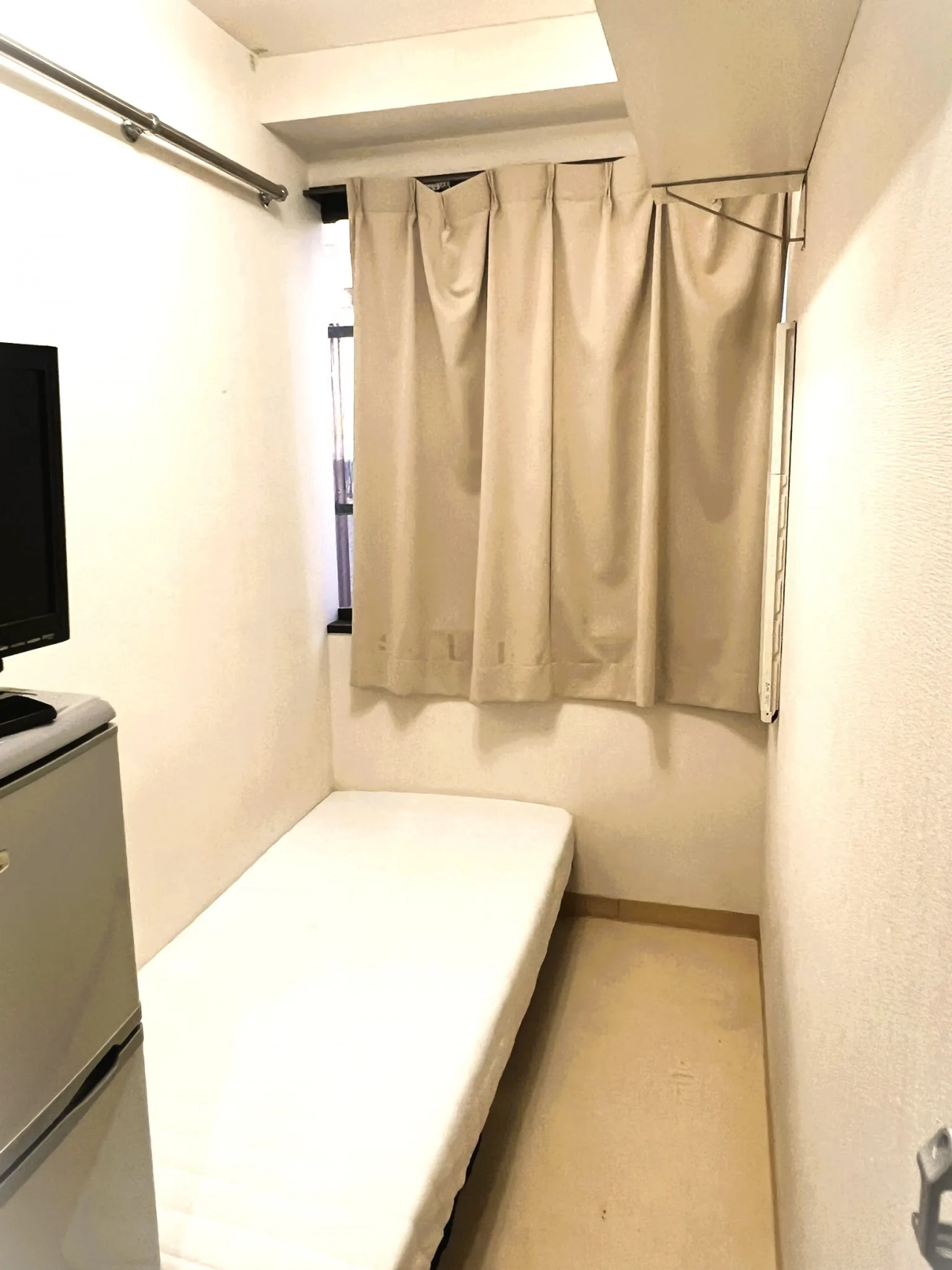 コンパクトな個室ながら、全室ボタン式の鍵付きで安心のプライベート空間を確保 冷蔵庫・テレビ・ベッドも備え付けのため、すぐに新生活をスタートできます